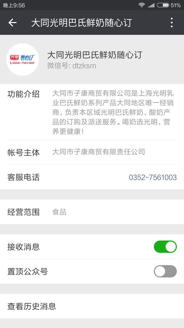 第一步:微信關(guān)注“大同光明巴氏鮮奶隨心訂”微信公眾平臺