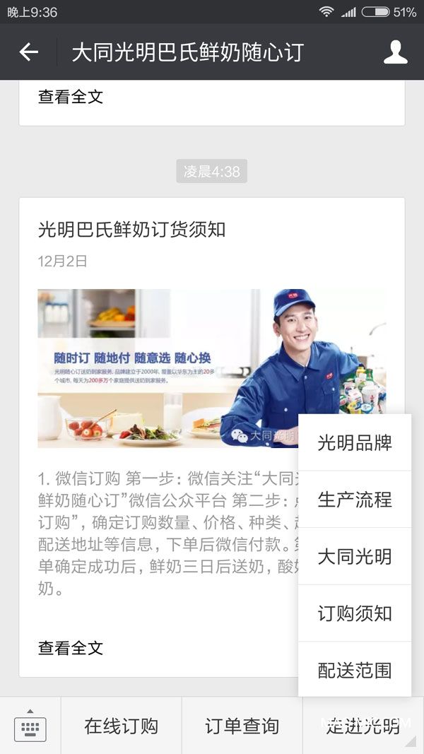 ★登錄大同光明巴氏鮮奶官方微信平臺付費(fèi);