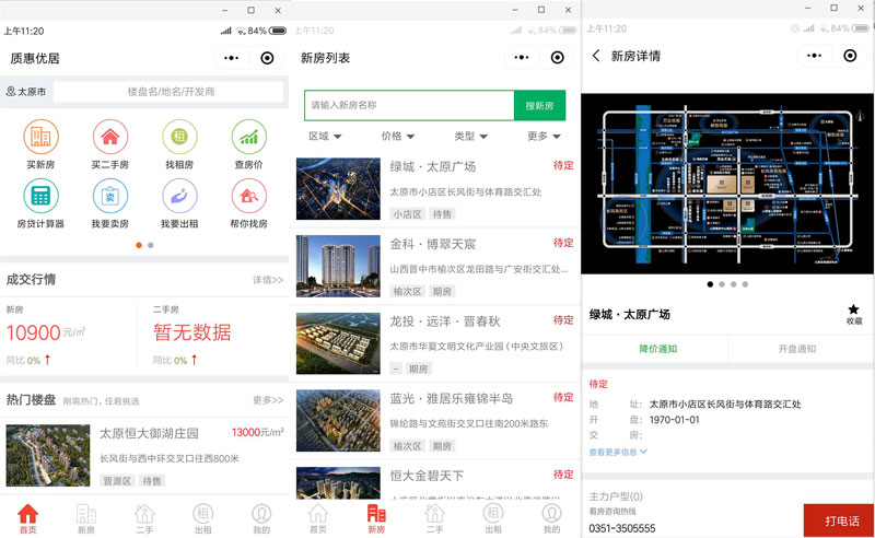 新優(yōu)居的智能化體現(xiàn)在方方面面,不同設(shè)備來訪問網(wǎng)站前臺(tái)時(shí),自動(dòng)顯示與之最相適應(yīng)的界面。并將房產(chǎn)數(shù)據(jù)以電腦端+手機(jī)端+微信端+小程序+APP(開發(fā)中)的不同形式