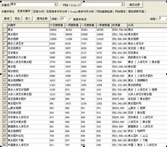通過圖5大家可以看到,我通過這個工具輸入關鍵詞“美女”我就得到了和美女相關的一些熱門詞的百度指數(shù)情況。假設我要去做美女圖片站的SEO,就知道除了主關鍵詞“美女”還有哪些詞有比較大的搜索量,值得我去做SEO。