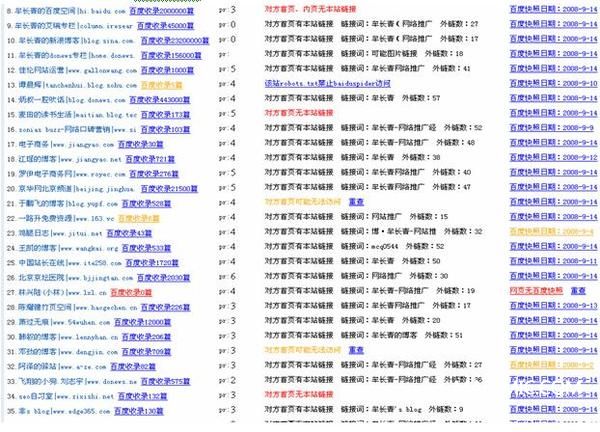 通過上圖可以看到,我鏈接的網(wǎng)站對方的百度收錄情況,對方的PR值情況,對方首頁內頁是否掛了我的鏈接,掛的關鍵詞是什么,是在對方外鏈第幾的個位置,對方最近的百度快照日期又是多少,這些這些都是交換友情鏈接衡量SEO效果的標準。有了這個工具,交換再多友情鏈接都不怕沒時間檢查了。我現(xiàn)在就每周檢查一次,發(fā)現(xiàn)有提示沒有掛我的網(wǎng)站,就去實際檢查下,確認對方去掉了,我這邊也就相應的去掉。該網(wǎng)站地址: