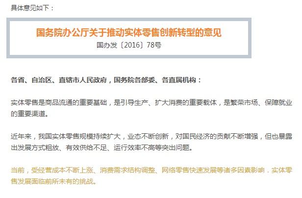 國務院辦公廳關于推動實體零售創(chuàng)新轉型的意見