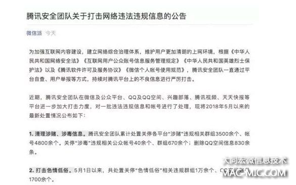 騰訊今日宣布關閉多平臺帳號累計4800余個 審查 移動互聯(lián)網(wǎng) 微信 微新聞 第1張