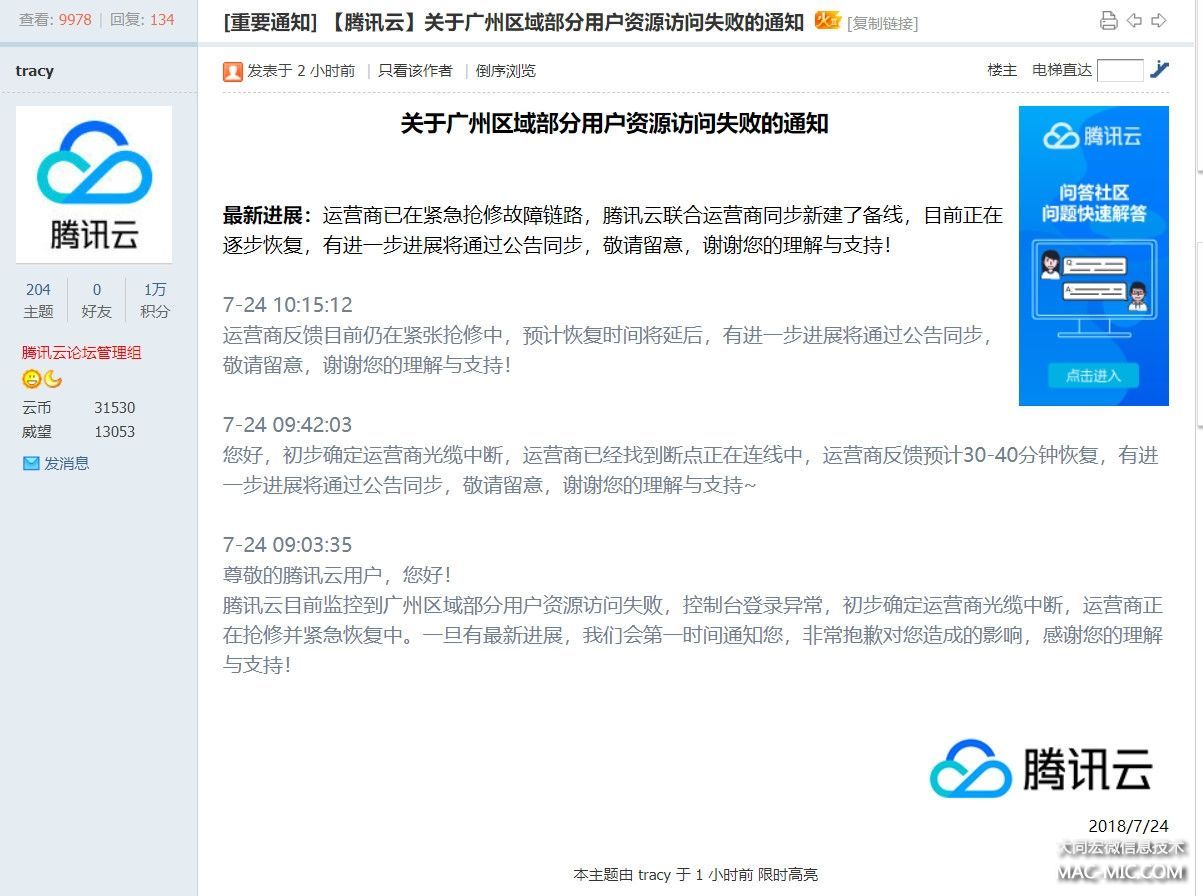 前沿?cái)?shù)控技術(shù)在微博中表示,在業(yè)務(wù)量的需求下,公司使用了騰訊云,可“災(zāi)難”發(fā)生在2018年7月20日。接下來(lái)的兩天,騰訊云組織了技術(shù)專家來(lái)對(duì)此次故障進(jìn)行補(bǔ)救,但前沿?cái)?shù)控技術(shù)公司數(shù)據(jù)還是丟失了。