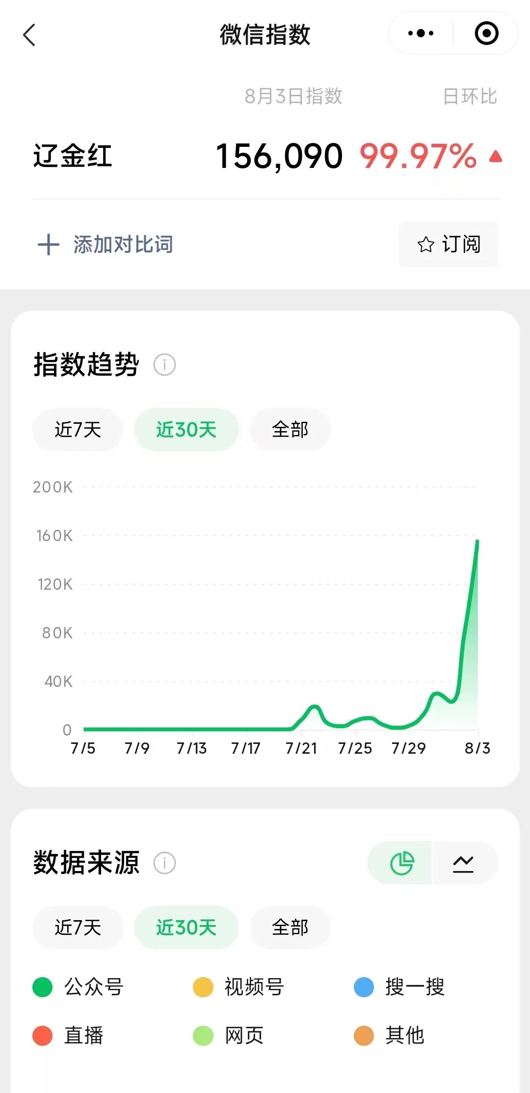 遼金紅微信指數(shù)已經(jīng)達到156090,